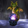 Odkryj uroczą figurkę smoka, mierzącą 18 cm. Ten smok z wielkimi oczami dumnie spoczywa na stosie kryształów, oświetlonych światłem LED, które magicznie odbija się w jego oczach.