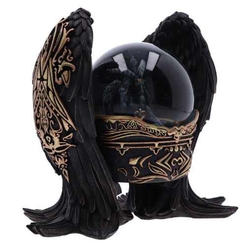 Śnieżna kula z kolekcji Baphomet od Nemesis Now przedstawia siedzącego Baphometa otoczonego gotyckimi skrzydłami ozdobionymi złotą symboliką. Idealna jako mroczny element wystroju.